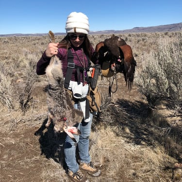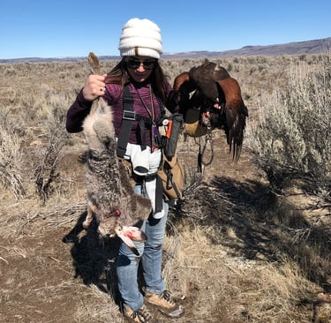 Jupiter is the best male I've ever flown. In his last season he had an average above three cottontails per outing. When we did jump ups with him, he'd jump from the ground to the top of a 6' perch continuously and in his peak physical condition he'd jump 450 times at five jumps a minute in one sitting. He's out of Storm and Elvis. Elvis was an accomplished quail hawk and Storm was a female so over-confident and reckless that she continued to get injured in the field. The athleticism and intensity on game made this incredible bird.