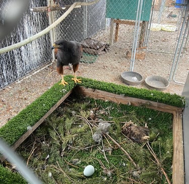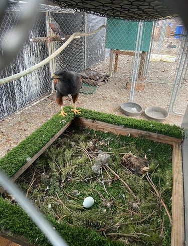 Clark is 16 years old now and has been Q's breeding partner for more than a decade. This pair has it's own cult following. There are at least three people every year that contact me just to ask if they're still producing birds and ask for a bird out of this specific pair. This pair forms the backbone of Dan Pike's Harris's Hawk breeding project before I took the torch.